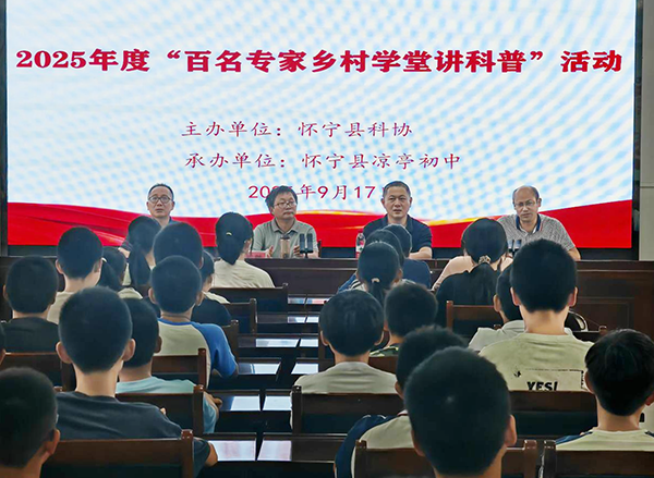 9月17日,应怀宁县科协邀请,九三学社社员、安徽省特邀科技志愿服务专家团成员、安庆师范大学教授程玉胜走进怀宁县凉亭初中,为两百多名师生作了一场《从大模型说起——探索人工智能如何赋能教学》的科普讲座活动。